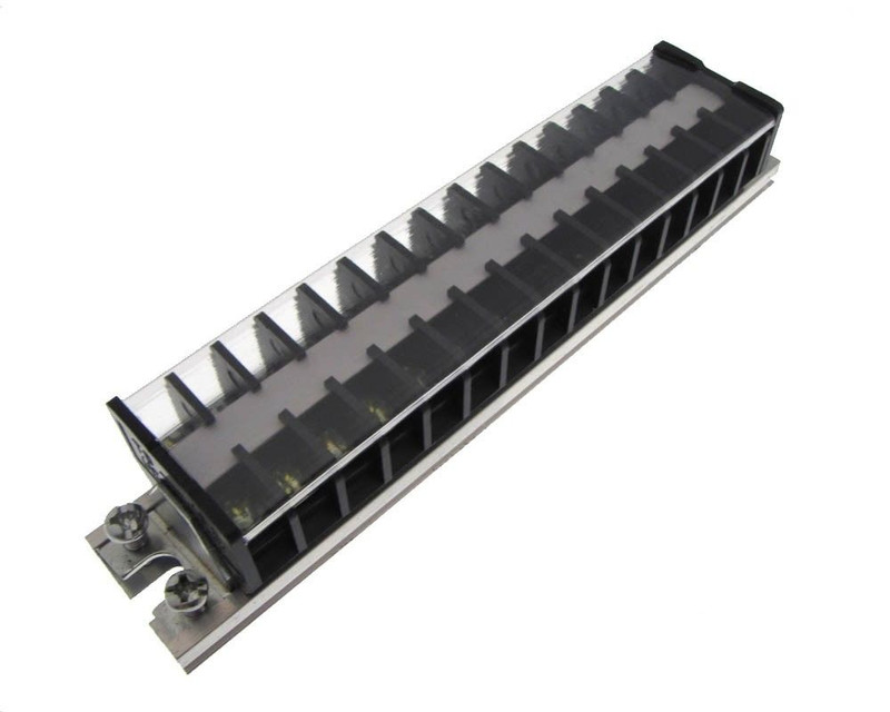 15 Position Screw Barrier Strip Terminal Block w/ Cover & Mounting Rail 10A