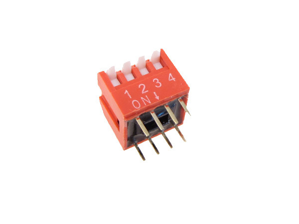 4 Position individual DIP switches. The pins have 2.54mm (0.1") spacing.