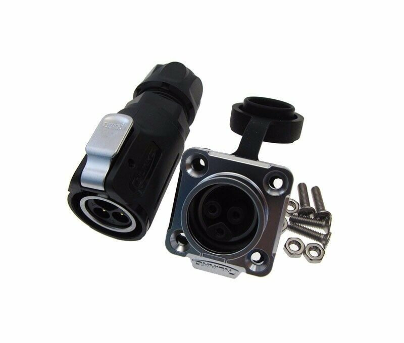 Panel mount socket, male pin on plug